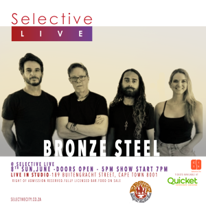 Bronze Steel is a four-piece band hailing from the vibrant city of Cape Town. The band consists of Chadwick on lead vocals and guitar, Barry on bass, Steve on drums,